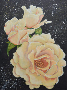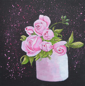 2020Gecombineerd met twee schilderijtjes uit dezelfde serie - roze en witte roos - vormt het een blikvanger aan de muur. Als je twee werken uit de serie koopt dan krijg je 10% korting. Koop je er drie, dan krijg je 15% korting.