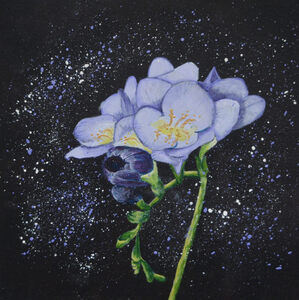 2020Gecombineerd met twee schilderijtjes uit dezelfde serie - gele en paarse fresia - vormt het een blikvanger aan de muur. Als je twee werken uit de serie koopt dan krijg je 10% korting. Koop je er drie, dan krijg je 15% korting.