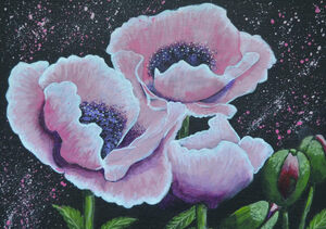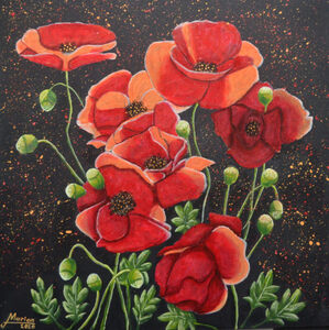 Marian schildert bloemen in close up waardoor de kijker 'in het kunstwerk wordt getrokken'. Zij schildert in heldere kleuren die in elkaar overvloeien. Marian schildert op niet al te grote formaten. Wil je dat het werk meer plaats inneemt op jouw muur? Kies dan voor een serie van twee of drie schilderijen. Zie bijv. Kleine boeketjes, Rozen, Fresia’s, Tulpen en Stokrozen. Deze zijn zo gemaakt dat ze goed bij elkaar passen.