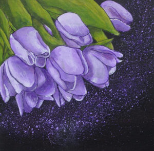 2020Gecombineerd met twee schilderijtjes uit dezelfde serie - gele en paarse tulpen - vormt het een blikvanger aan de muur. Als je twee werken uit de serie koopt dan krijg je 10% korting. Koop je er drie, dan krijg je 15% korting.