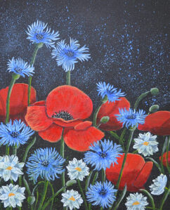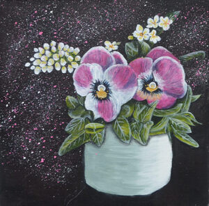 2020Gecombineerd met twee schilderijtjes uit dezelfde serie - boeket rozen en boeket viooltjes - vormt het een blikvanger aan de muur. Als je twee werken uit de serie koopt dan krijg je 10% korting. Koop je er drie, dan krijg je 15% korting.